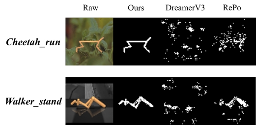 To tackle this problem, we apply a spatio-temporal masking strategy, a bisimulation principle, combined with latent reconstruction, to capture endogenous task-specific aspects of the environment for world models, effectively eliminating non-essential information. Joint training of representations, dynamics, and policy often leads to instabilities. To further address this issue, we develop a Hybrid Recurrent State-Space Model (HRSSM) structure, enhancing state representation robustness for effective policy learning. Our empirical evaluation demonstrates significant performance improvements over existing methods in a range of visually complex control tasks such as Maniskill with exogenous distractors from the Matterport environment.