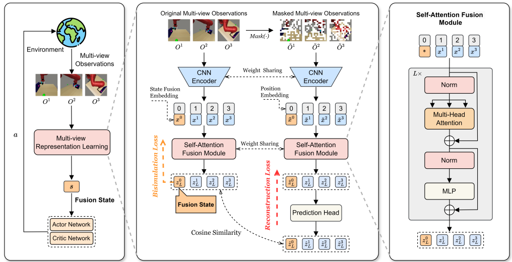 In this study, we designed a novel Multi-View Reinforcement Learning (MVRL) framework, Multi-view Fusion State for Control (MFSC), to address the challenge of learning compact and task-relevant representations from multi-view observations, particularly when facing redundancy, distractors, or missing views. This is achieved by firstly incorporating bisimulation metric learning into the MVRL pipeline, and secondly introducing a multiview-based mask and latent reconstruction auxiliary task to effectively exploit shared information and significantly improve the...